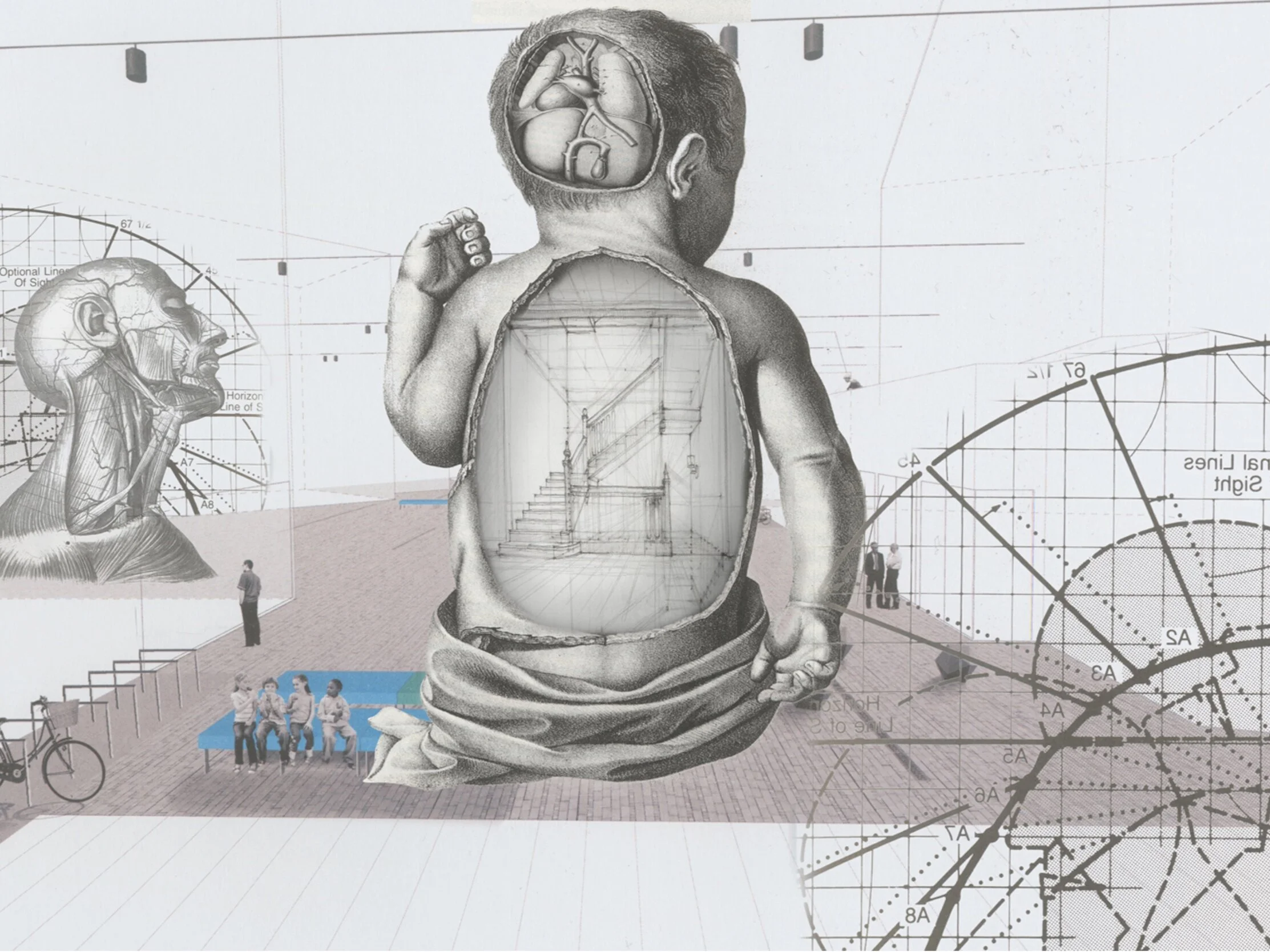 Series based on childhood, development and education created from archives of medical illustrations and architectural drawings.